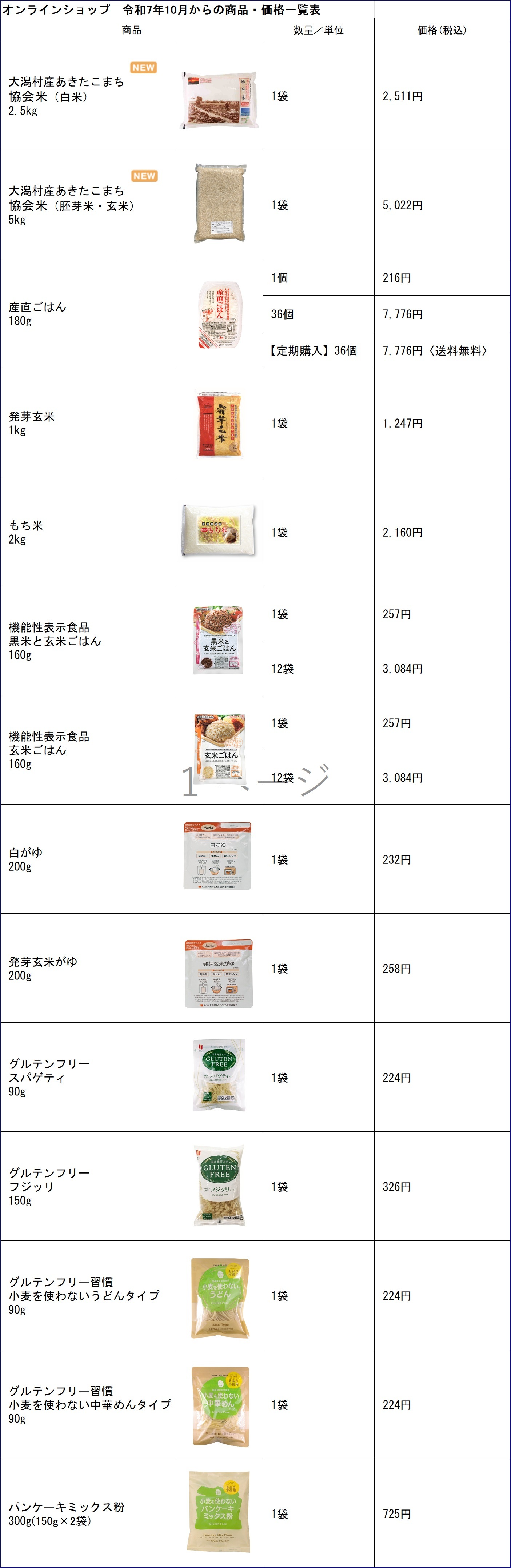 10月1日からの発送を予定しておりますが、米価高騰と生産コスト上昇により、下記の通り価格改定をお願い申し上げます。